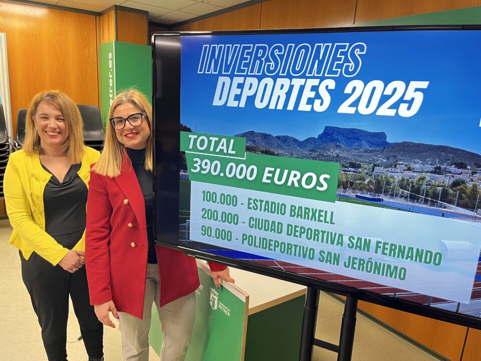 Irene Navarro, alcaldesa de Petrer, y Patricia Martínez, concejala de Deportes, han anunciado esta mañana las grandes inversiones en instalaciones deportivas que va a llevar a cabo el Ayuntamiento de Petrer en este 2025, para las que se han consignado 390.000 euros.