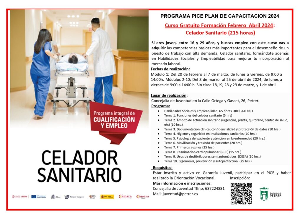 Los jóvenes interesados pueden ampliar la información a través de la propia concejalía, por medio del teléfono 687 22 48 81 o del correo juventud@petrer.es. Y la inscripción se puede realizar por medio del enlace: https://bit.ly/petrerinscripcioncursopiceceladorsanitario.