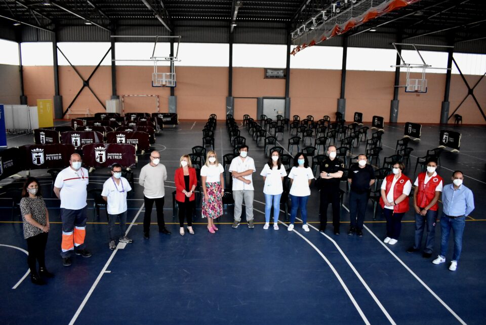 El Ayuntamiento de Petrer ha organizado un acto de homenaje y agradecimiento público destinado a todos los colectivos que han participado de forma activa en el proceso de vacunación masiva contra el Covid-19 que se ha llevado a cabo en el pabellón polideportivo de San Jerónimo durante los últimos tres meses.