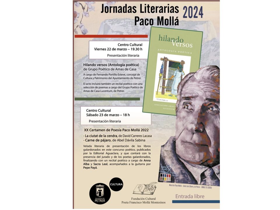 Para conmemorar el Día Mundial de la Poesía -21 de marzo- y recordar la figura del poeta local Francisco Mollá Montesinos, el Ayuntamiento de Petrer y la Fundación Paco Mollá presentan este fin semana tres poemarios.