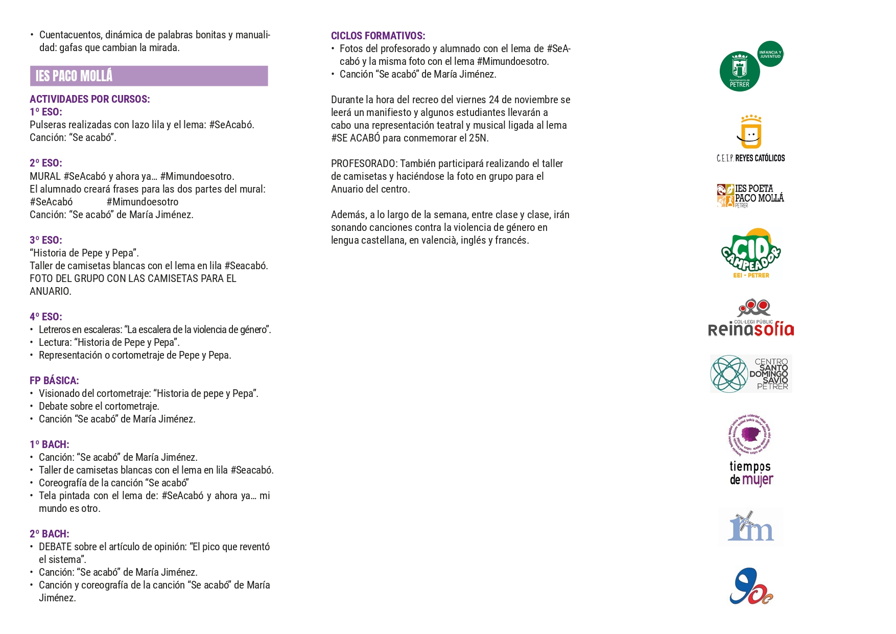 La alcaldesa ha tenido palabras de agradecimiento para la comunidad educativa “por su implicación”, para el Consell de les Dones, “de donde nace el manifiesto que se leerá el 25 de noviembre” y ha recordado que “como siempre digo, la mejor campaña es la que no habría que hacer, porque la lacra habría desaparecido, pero, entendemos que en el momento en el que nos encontramos, es más necesario que nunca”.