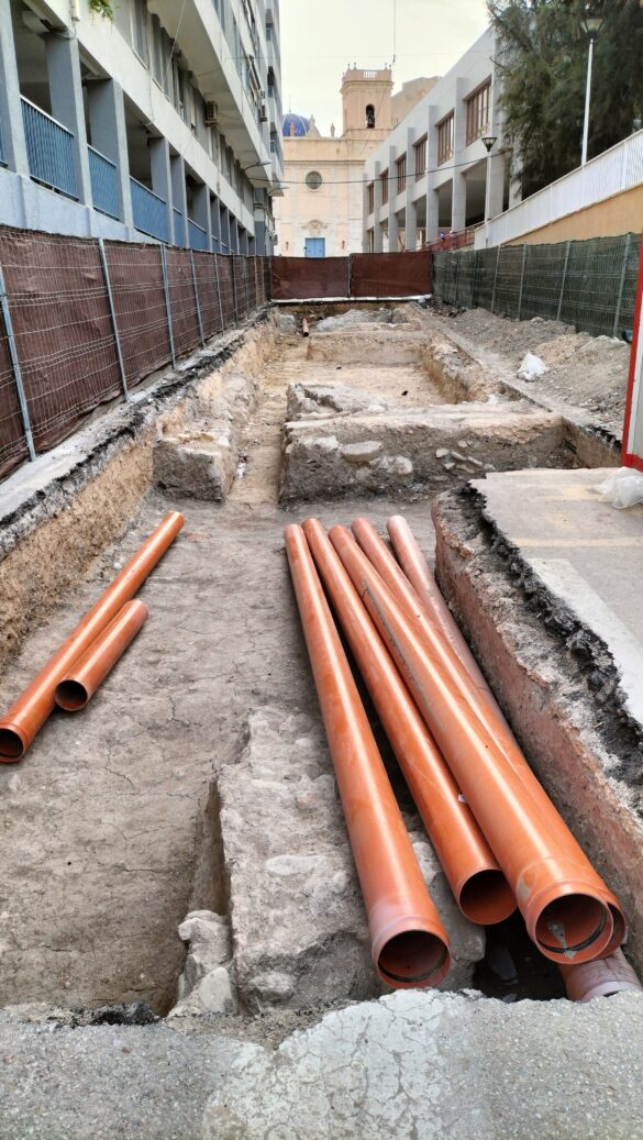 Tras recibir la autorización de la Conselleria de Educación, Cultura y Deporte desde el pasado 22 de febrero, la Concejalía de Patrimonio ha comenzado con la reposición de los servicios urbanos retirados durante el proceso de excavación en la calle Constitución y su posterior cubrimiento para volver a dar uso a este tramo de calle.