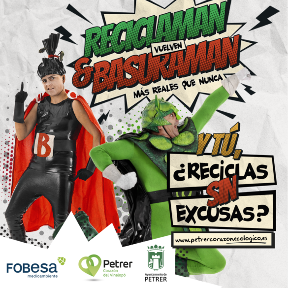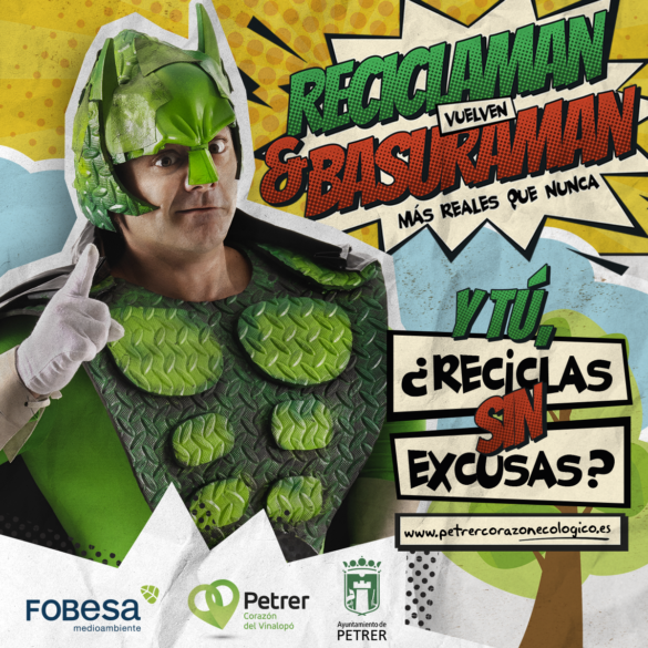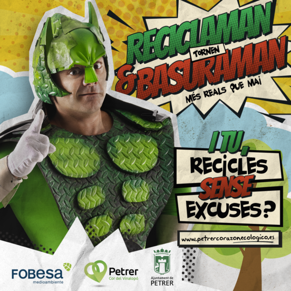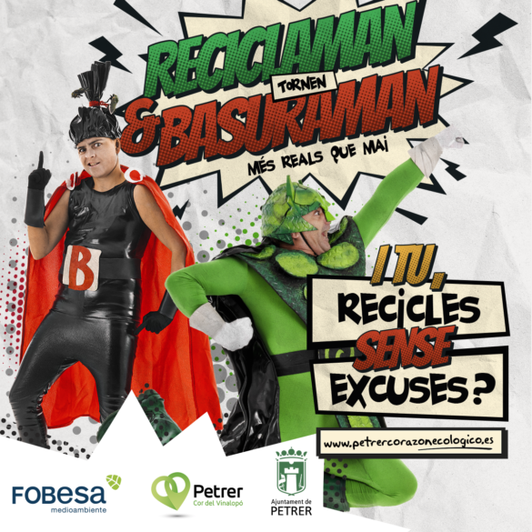 La nueva campaña ya puede verse desde hoy en diferentes soportes y canales como publicidad exterior, medios impresos, radio, televisión, redes sociales… Además, también se han previsto algunas acciones informativas de calle en las que Reciclaman y Basuraman recorrerán algunas zonas de Petrer, sobre todo, los mercados locales, acompañados por el equipo de educadores ambientales.