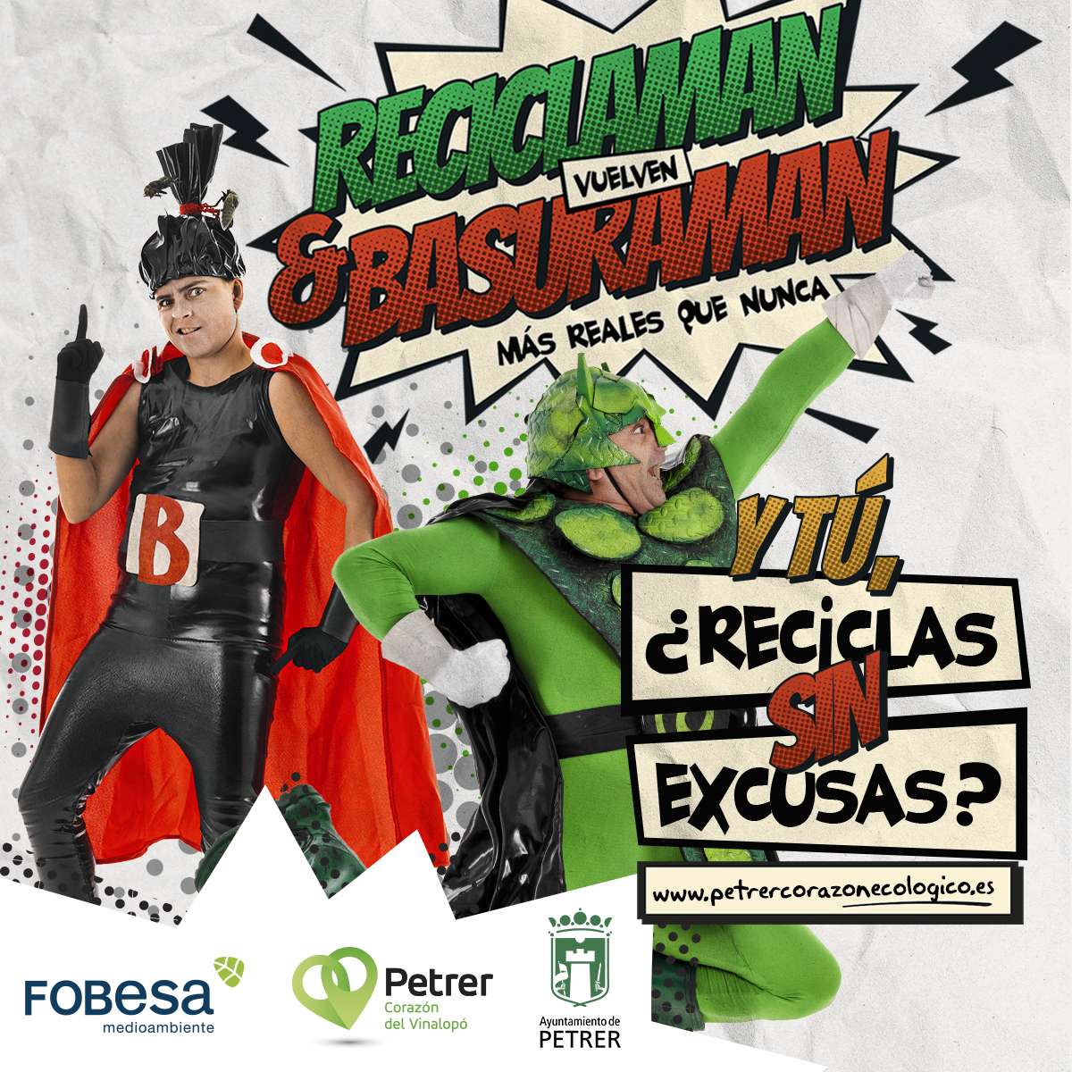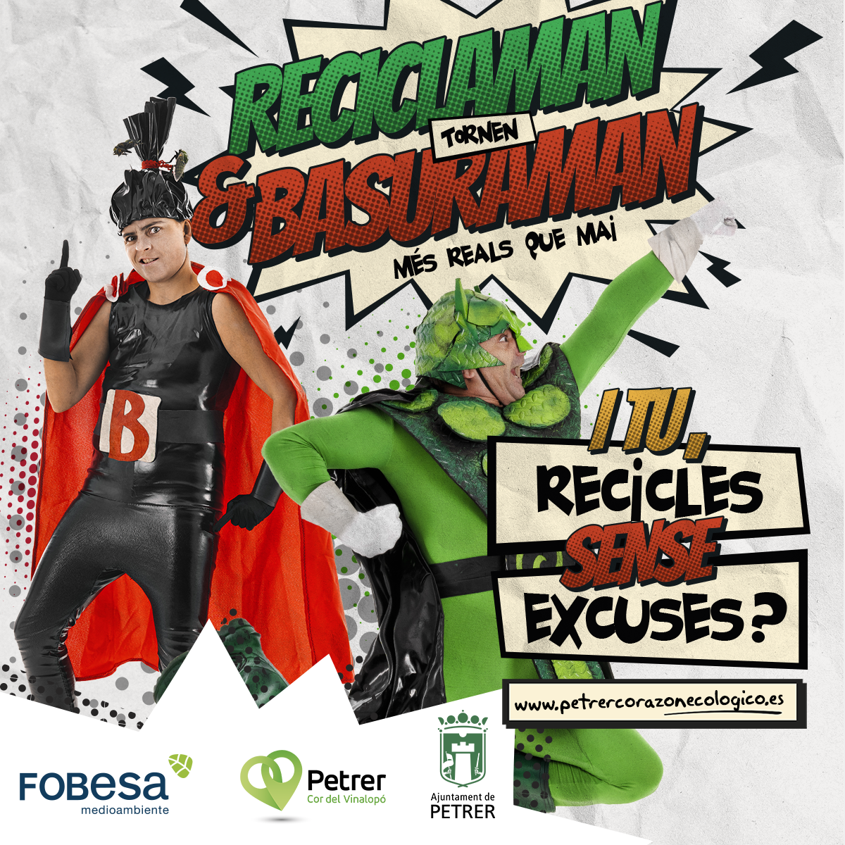 En la campaña, Reciclaman representa al héroe cuya misión es garantizar que Petrer sea el corazón ecológico del Vinalopó y trabaja día a día para combatir los malos hábitos en materia de reciclaje y separación de residuos. Basuraman, por su parte, encarna al personaje que recorre los rincones de Petrer lanzando sus excusas a diestro y siniestro para no reciclar correctamente sus residuos, la mayoría de las veces debido al desconocimiento.