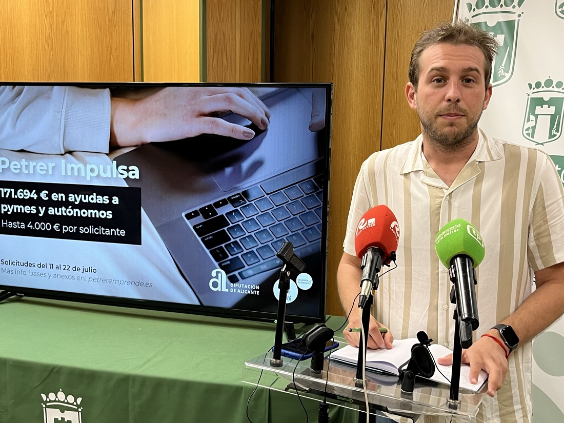 Los interesados pueden tramitar sus solicitudes del 11 de julio al 22 de julio a través del registro electrónico del ayuntamiento de Petrer (petrer.sedelectronica.es). Previamente pueden consultar los CNAES y los gastos justificables, así como las bases y los anexos en petreremprende.es .Esta es una convocatoria financiada exclusivamente por la Diputación de Alicante.