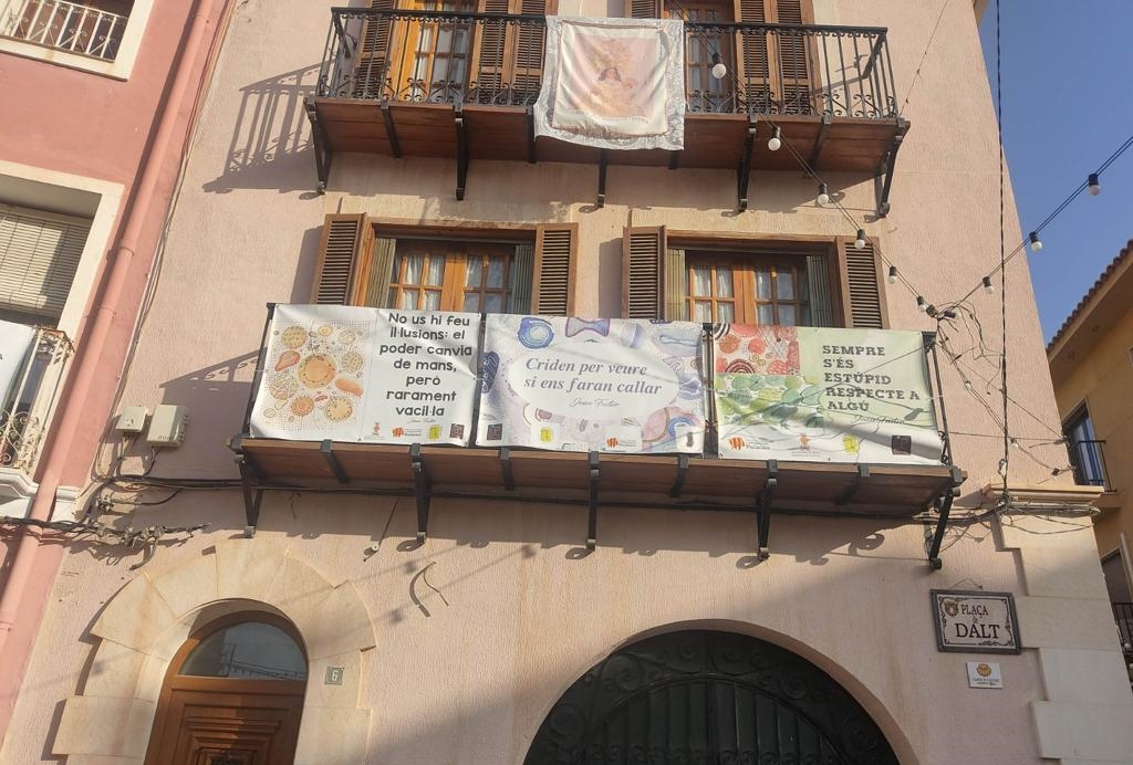 Una d’elles són les Balconades d’Aforismes de Fuster, ideada per la Biblioteca Municipal de Muro “Francesc de Paula Momblanch” i l’IES Serra de Mariola, amb la col·laboració de Terres del Vinalopó. Les Balconades són un conjunt de 27 llenços amb aforismes (cites que descriuen la realitat d’una forma enginyosa i irònica) penjats en balcons dels carrers Capellà Bartolomé Muñoz i la plaça de Dalt. Els llenços estaran exposats en els balcons fins al 7 de novembre.