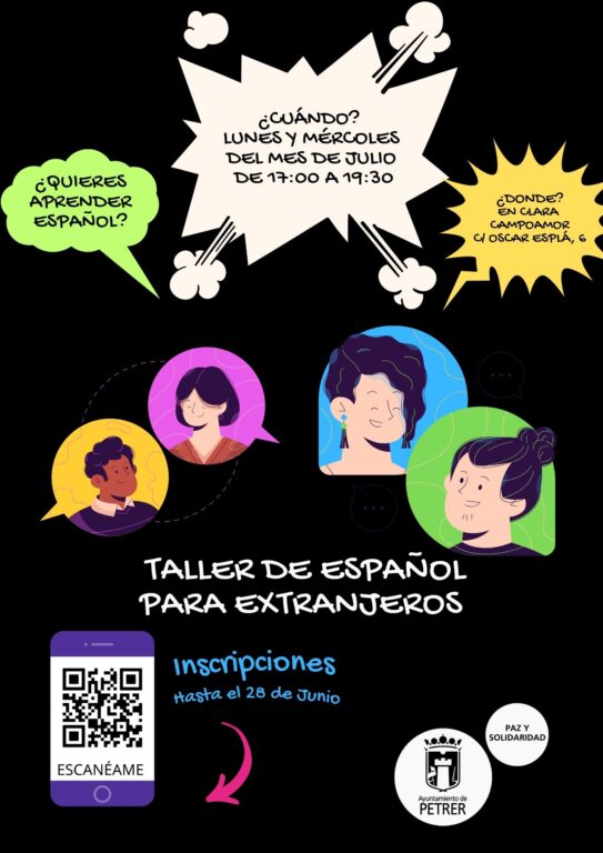 La concejalía de Paz y Solidaridad del Ayuntamiento de Petrer ha organizado un curso de español dirigido a las personas extranjeras residentes en el municipio con el objetivo de que puedan adquirir los conocimientos básicos de español que les permitan comunicarse con fluidez en su vida cotidiana y, de ese modo, tener una inclusión más efectiva y real en la sociedad.