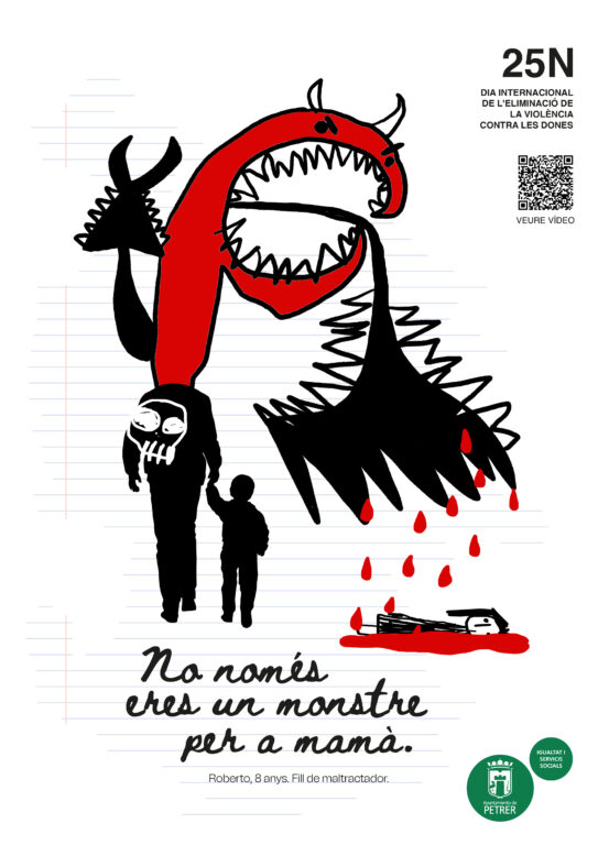 El vídeo, de algo más de un minuto de duración, muestra, a través de la técnica audiovisual “trozo de vida”, la situación de dolor y sufrimiento que puede vivir cualquier menor en un hogar con violencia de género, cerrando con el mensaje “no solo eres un monstruo para mamá. En la historia, el elemento que hace saltar todas las alarmas es el dibujo terrorífico del niño protagonista. Precisamente dicho dibujo es la imagen de la cartelería de la campaña que se va a poder ver en redes sociales, cartelería en edificios públicos y campaña de publicidad exterior.
