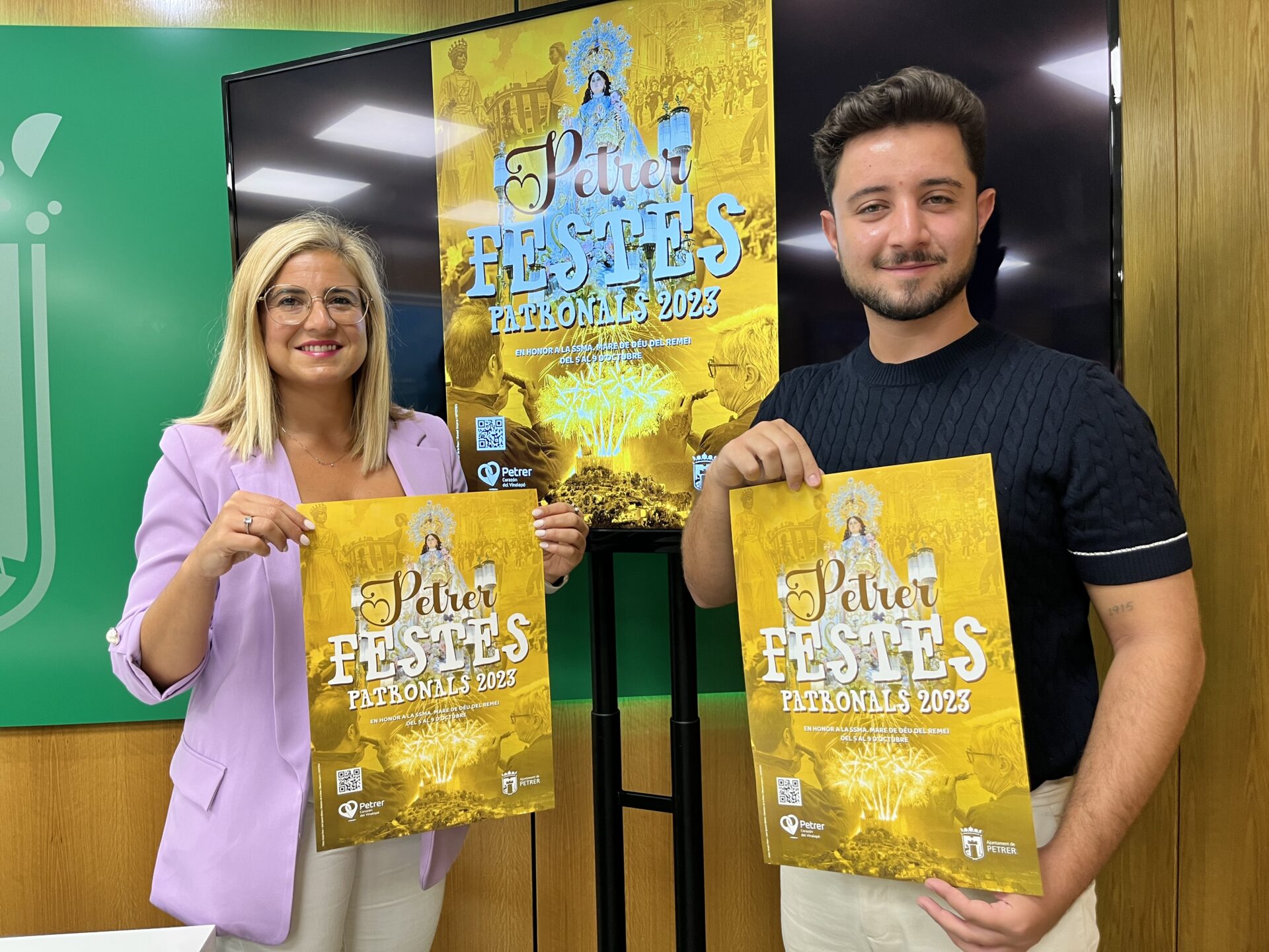 Cuando faltan 15 días exactos para el inicio oficial de las Fiestas Patronales de Petrer en honor a la Virgen del Remedio, del 5 al 9 de octubre, esta mañana la alcaldesa de Petrer, Irene Navarro, y el concejal de Fiestas, Alejandro Ruiz, han presentado el cartel anunciador y el vídeo promocional de las fiestas de este año.
