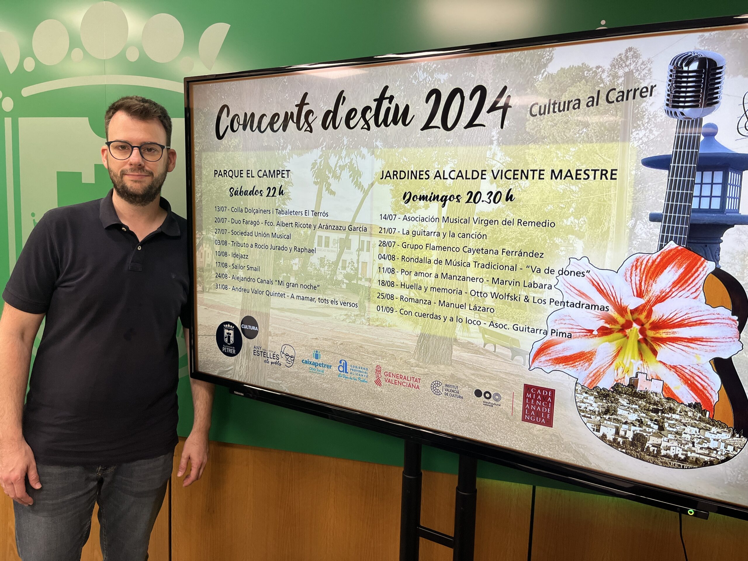 El concejal de Cultura del Ayuntamiento de Petrer, Fernando Portillo, ha presentado hoy la programación de «Concerts d’Estiu 2024», que contará con un total de 16 conciertos, principalmente de grupos y cantantes locales.