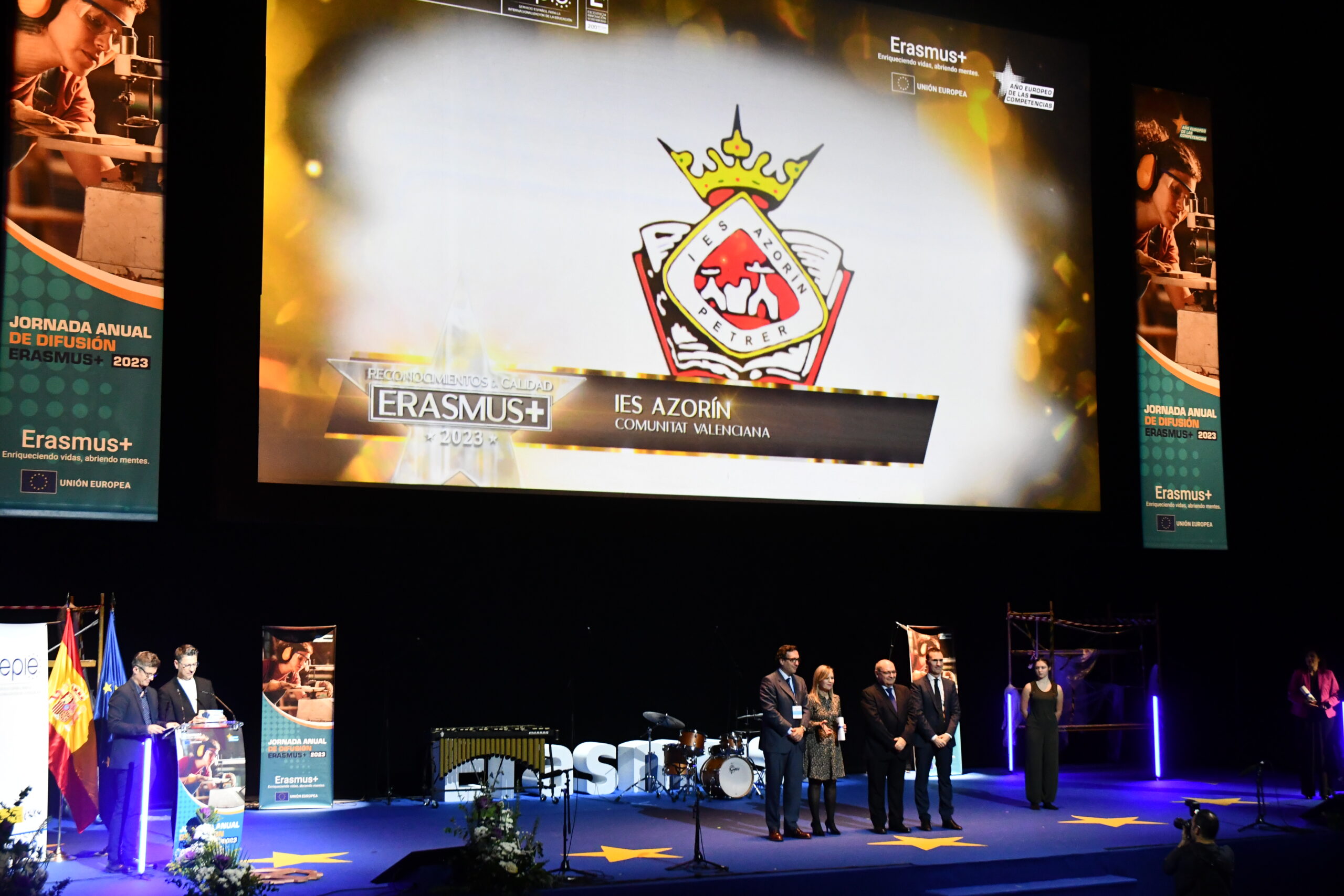 El pasado martes 12 de diciembre en el Teatro Real de Madrid, en el marco de la Jornada Anual de Difusión Erasmus+ el IES Azorín de Petrer recibió el Reconocimiento a la Calidad de Proyectos Erasmus+ en Educación Escolar, un premio a su trayectoria de casi una década en el programa europeo concedido por el Servicio Español para la Internacionalización de la Educación (SEPIE). Su directora, Ana María Almendros, recogió el galardón en nombre de toda la comunidad educativa. Es el único instituto de la Comunidad Valenciana que ha recibido dicho premio en la categoría de Educación Escolar 2023.