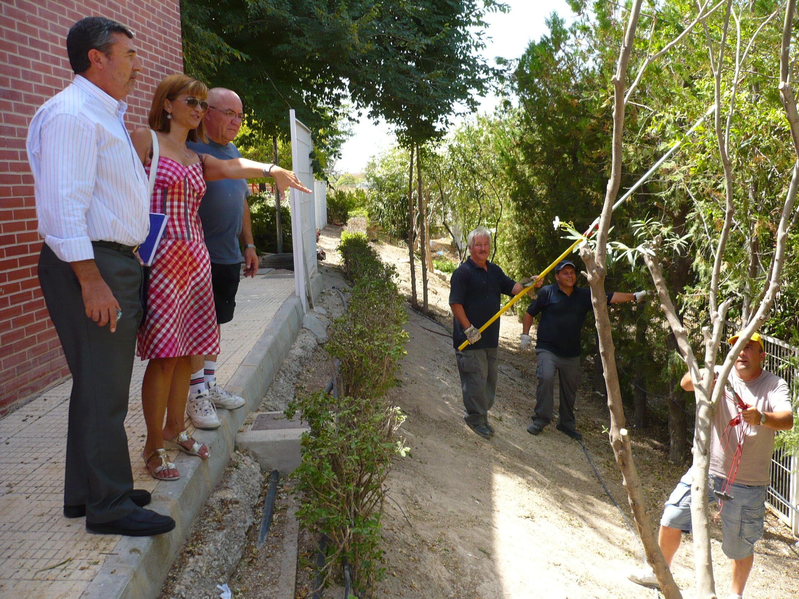 El alcalde de Petrer, Pascual Díaz, y la concejala de Educación, Mari Carmen Chico de Guzmán, se han desplazado hasta el colegio Reina Sofía, para comprobar in situ las labores de jardinería que están realizando los trabajadores del programa de empleo valenciano EMCORP, en los diferentes centros educativos de Petrer y que de momento han actuado en La Foia y en estos momentos en el citado centro. Díaz ha conversado con los trabajadores y el conserje del Reina Sofía y les ha dado la enhorabuena por el magnífico trabajo que realizaron en La Foia y que están haciendo en Reina Sofía. Han limpiado, podado, desbrozado, como nunca antes se había hecho, y la verdad es que tanto los trabajadores del EMCORP, como los conserjes de los centros y los empleados de Servicios están realizando un trabajo de categoría.