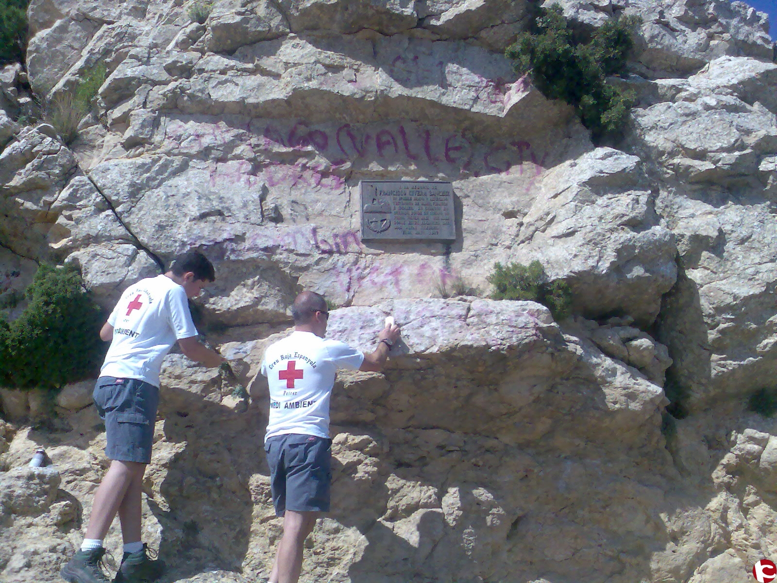 Jornada de limpieza celebrada en el Cid el sábado 3 de julio por voluntarios de Cruz Roja Española en Petrer.