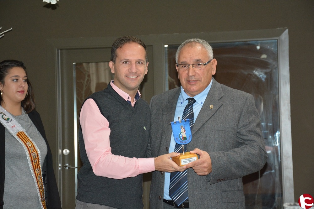 2. El alcalde entrega al pregonero un recuerdo con la imagen de la patrona del barrio