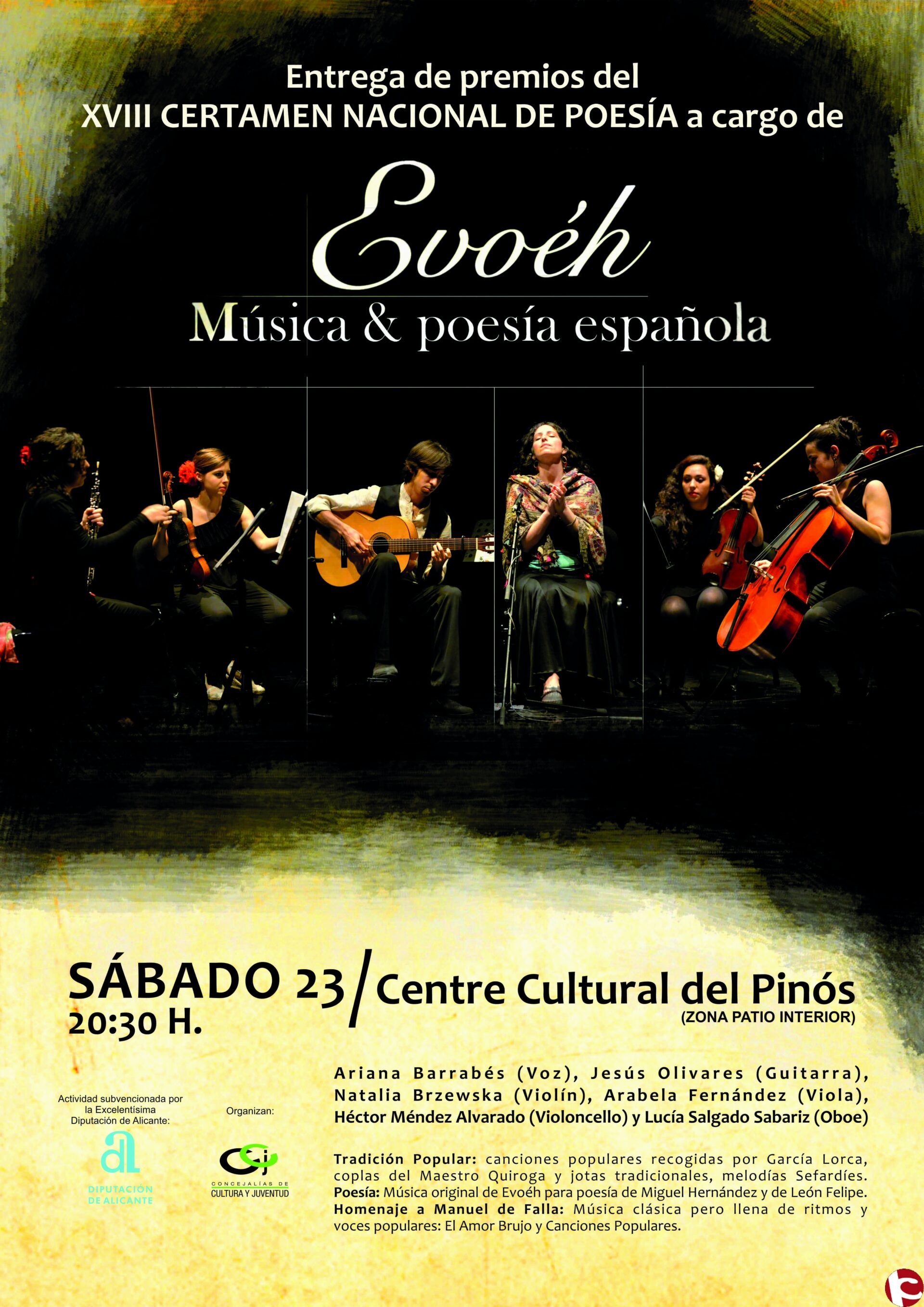 Los galardones serán entregados este próximo sábado, 23 de mayo, en un acto que tendrá lugar en el Centre Cultural El Pinós, y que incluirá el espectáculo Música y Poesía que ofrecerá el grupo de voz y guitarra EVOÉH, a partir de las 20:30 horas.