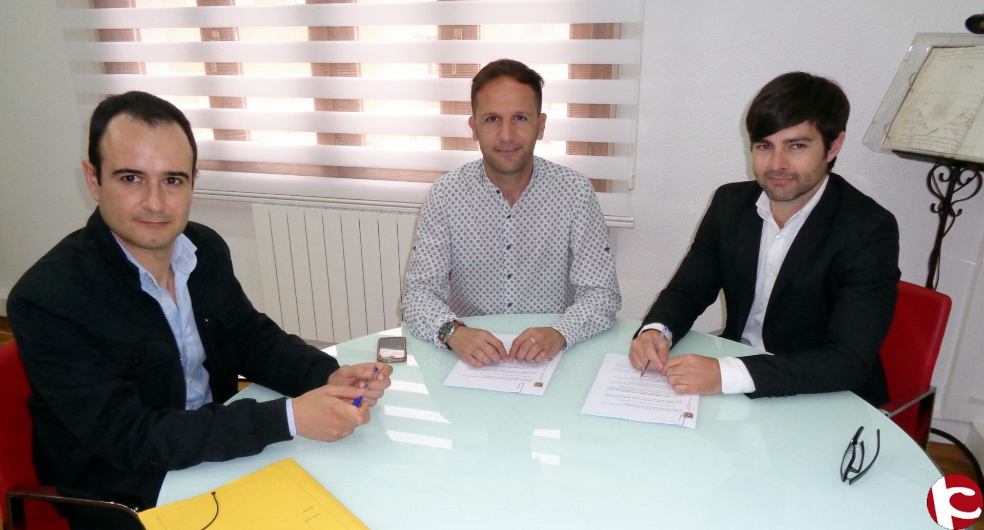 El alcalde de Pinoso y presidente de la Mancomunidad de la Vid y el Mármol, Lázaro Azorín, y el representante de la empresa Educanova Consultores y Recursos S.L., Fermín Egido, han firmado hoy el contrato del Servicio de Asistencia a Domicilio de la entidad mancomunada integrada por los municipios de Algueña, La Romana, Hondón de los Frailes y Pinoso.
