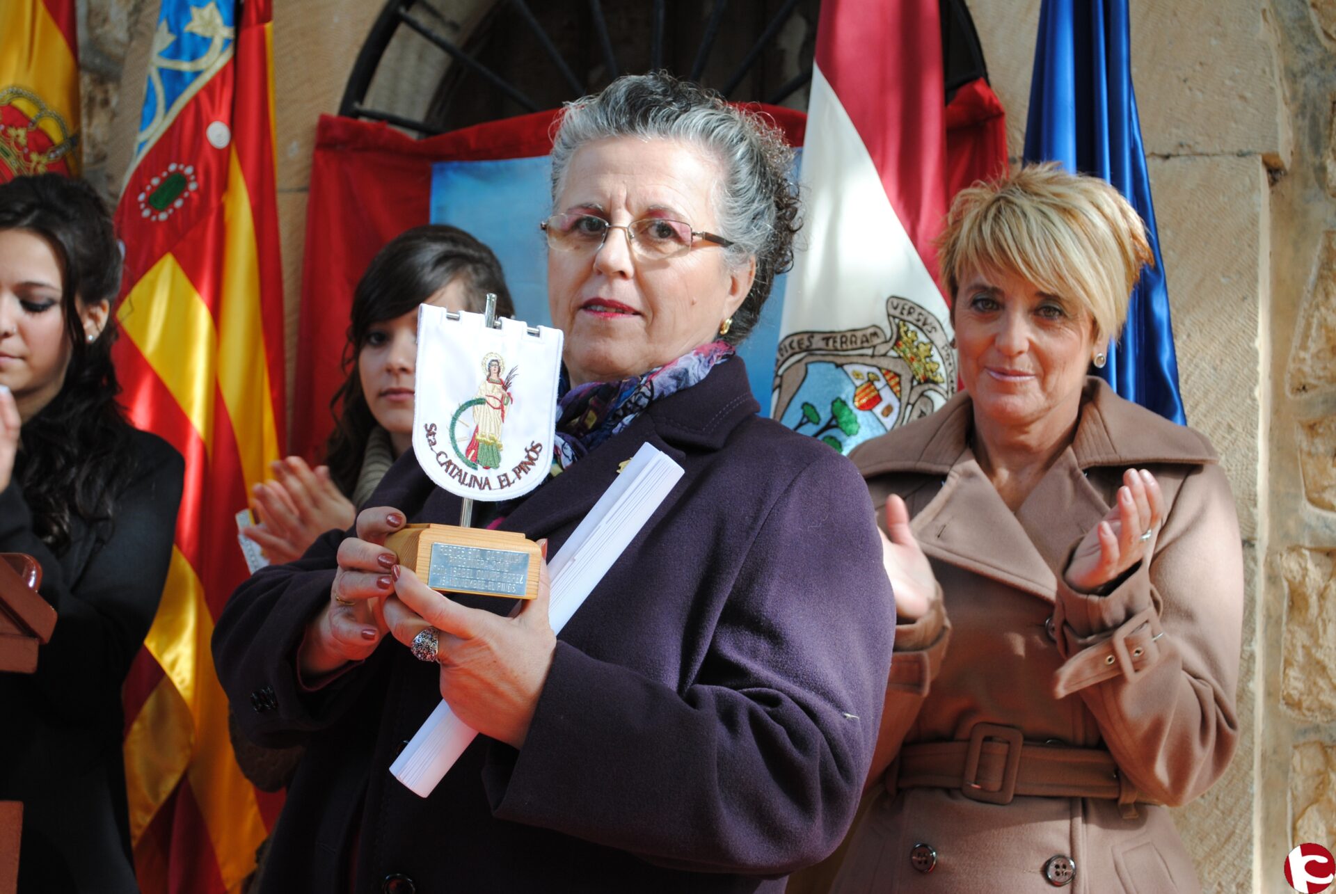 El Alcalde de Pinoso. Lázaro Azorín, que le impuso el pin del escudo de Pinoso destacó que “ los recuerdos que ha narrado Isabel son reflejos de la historia” y que a partir de ahora “ Isabel formará parte de la historia del Barrio como pregonera” La primera autoridad municipal también recordó cuando el pasado año se produjo el encuentro entre la patrona de Pinoso la Virgen del Remedio y la patrona del Barrrio Santa Catalina.