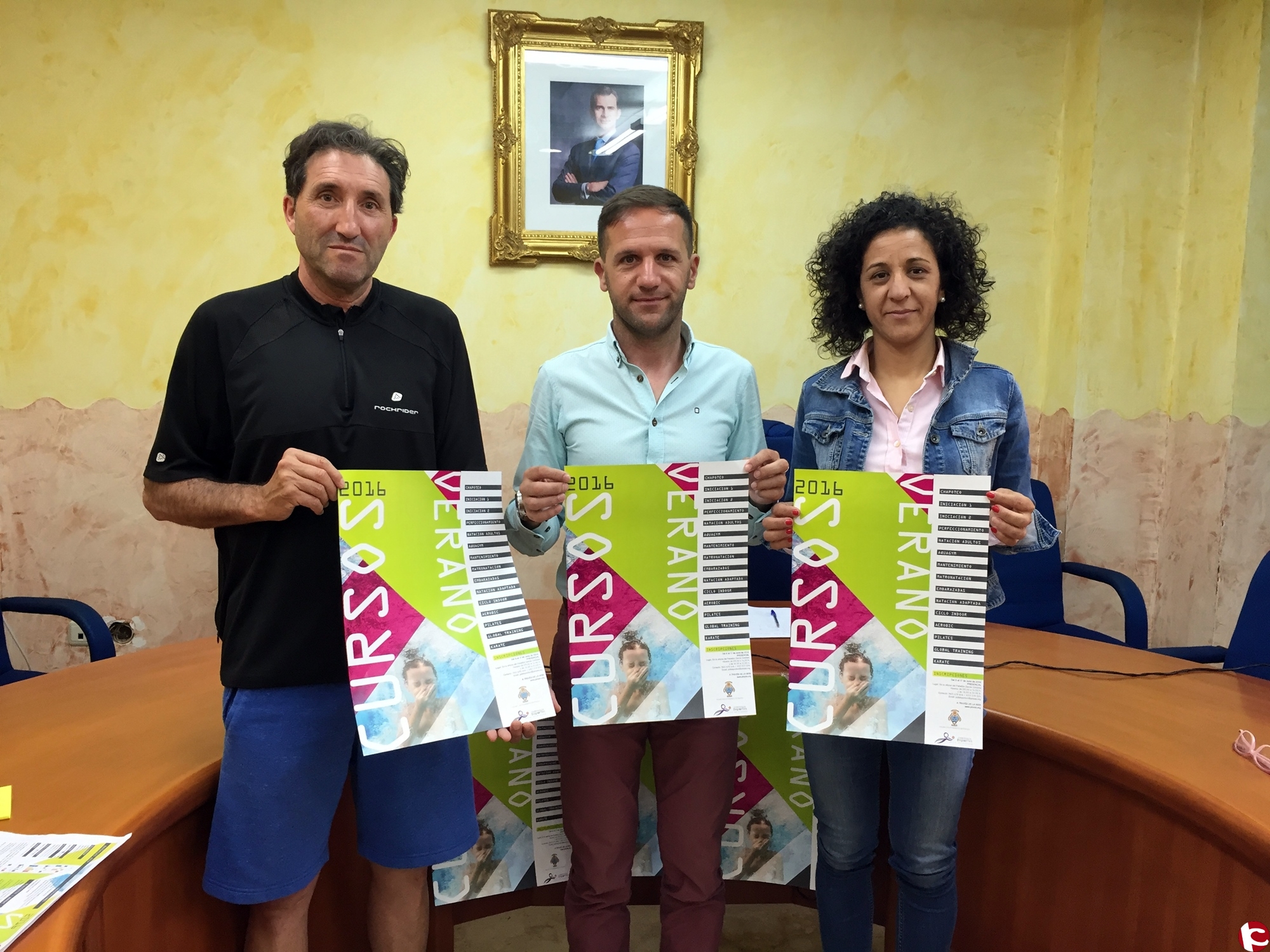 Martes, 24 de mayo de 2016. La Concejalía de Deportes del Ayuntamiento de Pinoso ha presentado hoy la programación de los Cursos de Verano 2016, una amplia variedad de actividades deportivas que se concentrarán en los meses de junio y julio. Como principal novedad, el alcalde de Pinoso, Lázaro Azorín y la edil de Deportes, Silvia Verdú, han destacado la puesta en marcha de un nuevo sistema que permitirá a los usuario completar su inscripción en los diferentes cursos y actividades a través de internet.