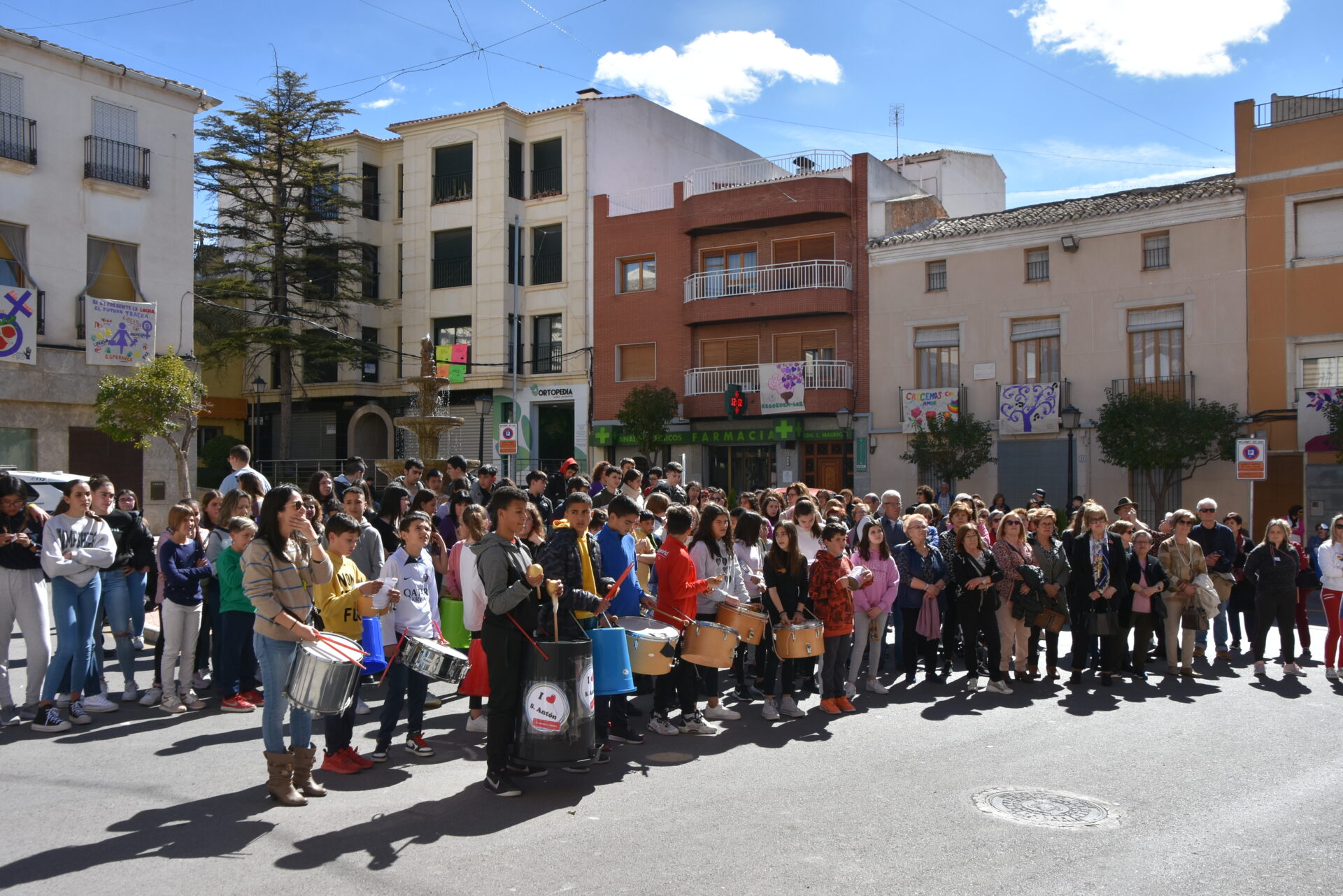 L’acte ha començat amb una sonora batucada que ha estat a càrrec de l’alumnat del CEIP San Antón.