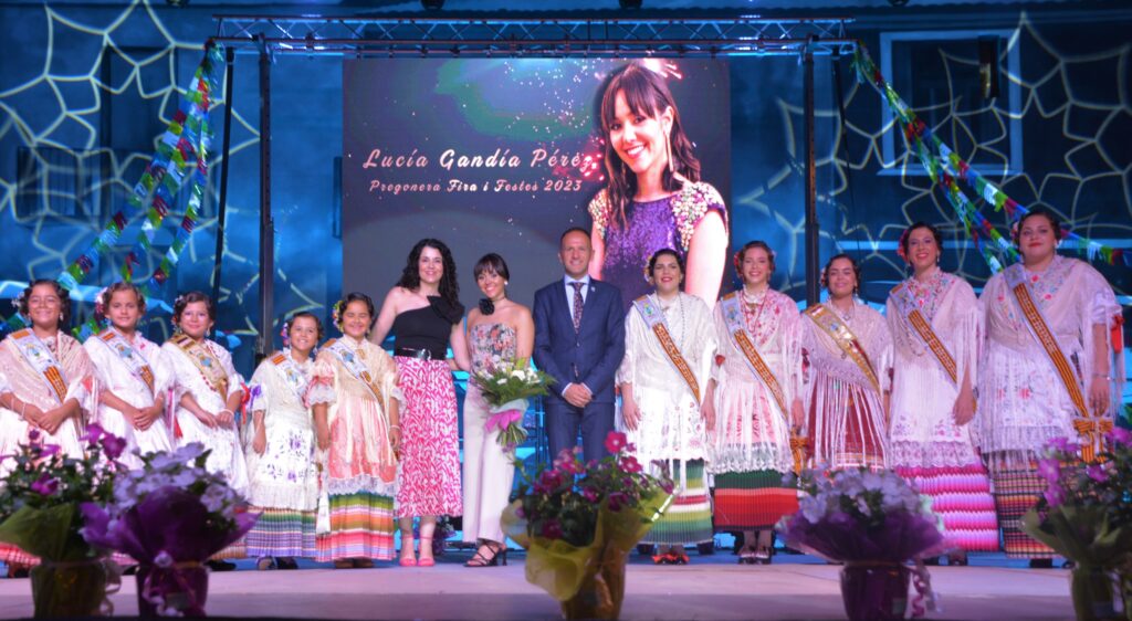Seguidament feien la seua entrada les Corts d’Honor Infantil i Major, primer acte oficial dels festejos, per a acompanyar a la pregonera Lucia Gandia que accedia a l’escenari al costat de la presidenta de la Comissió de Festes, Elisa Santiago, l’edil de Festes, Mª José Moya, i l’alcalde del Pinós, Lázaro Azorín.