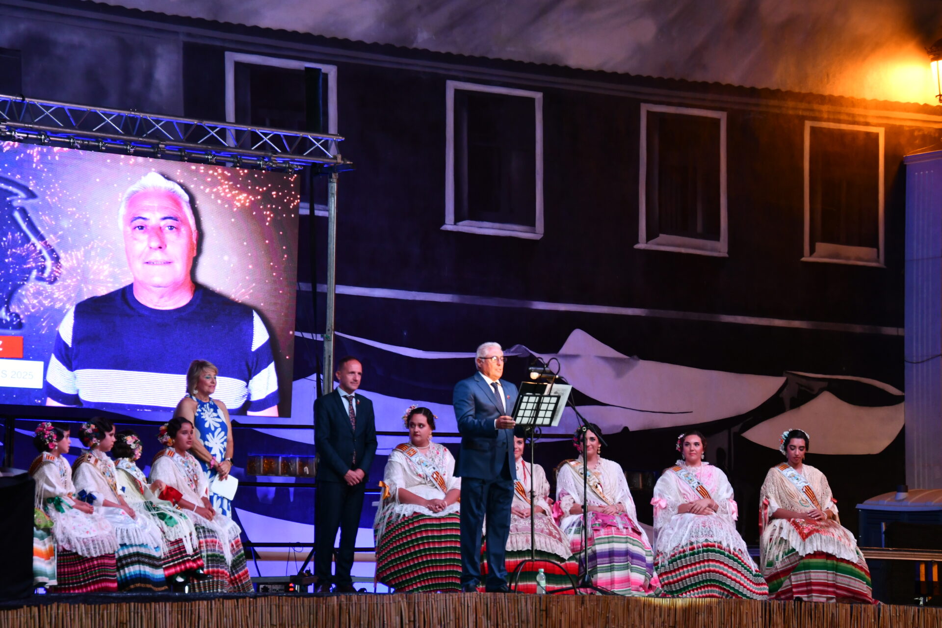 A continuación, el alcalde Lázaro Azorín ha presentado a Juanito, destacando su profunda conexión con Pinoso y su incansable labor en la Comisión de Fiestas. Azorín ha recordado con cariño la trayectoria de Juanito, su implicación en el deporte local y en la Semana Santa, resaltando su figura como «una persona incansable, comprometida, muy trabajadora, y sobre todo es amigo de la gente que lo conoce”. Para el alcalde, estas serán sus últimas fiestas al frente del ayuntamiento, por lo que espera vivirlas intensamente y ha invitado a toda la población a vivir también intensamente cada momento, de día y de noche, animando a pinoseros y pinoseras, y visitantes a salir a la calle y disfrutar de la convivencia.