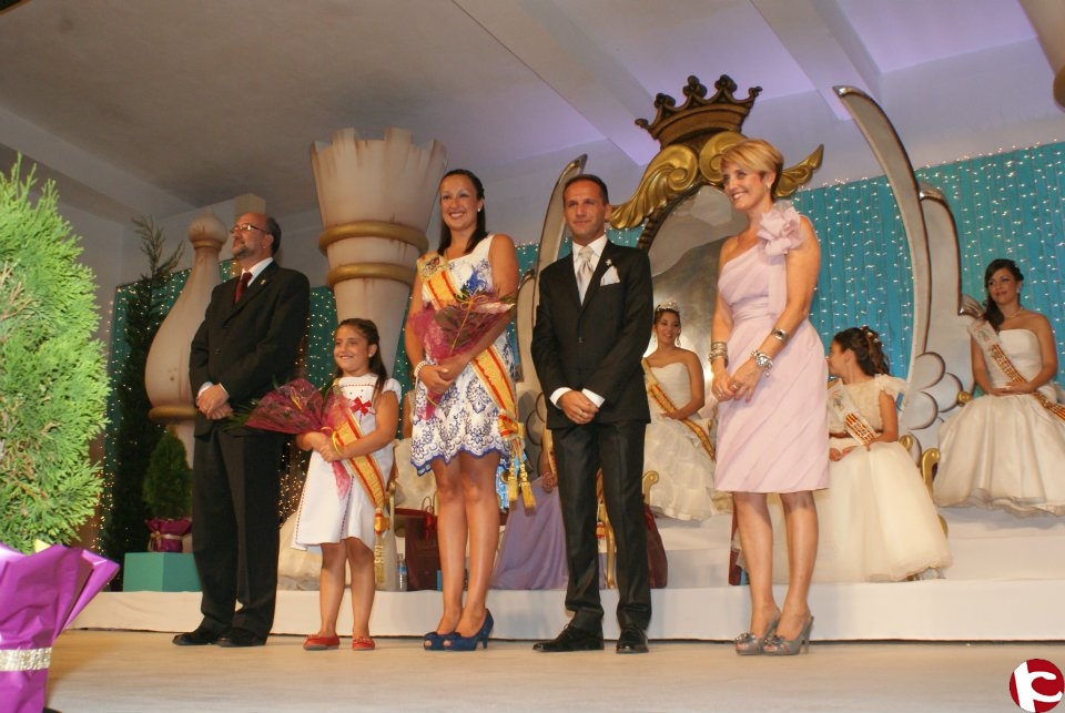 La joven Juliette Albert Leal y la niña Raquel Rodríguez Mira fueron coronadas como Reinas de Fiestas 2012 junto al resto de las componentes de las Cortes de Honor Infantil y Mayor, que ocuparon el cargo de Damas de Honor. La delegación invitada de Villena, compuesta por África Palao, Laura Ortega y Carlos Beltrán, fue llamada a subir al escenario para acompañar a las nuevas Reinas en este año que comienza. El primer teniente de alcalde destacaba la importancia de que por primera vez la ciudad de Villena fuera invitada a esta Coronación. Nuestras Regidoras han cumplido a la perfección su papel de representantes festeras de la ciudad, añadía el concejal, que acompañó a África y Laura durante toda la noche.