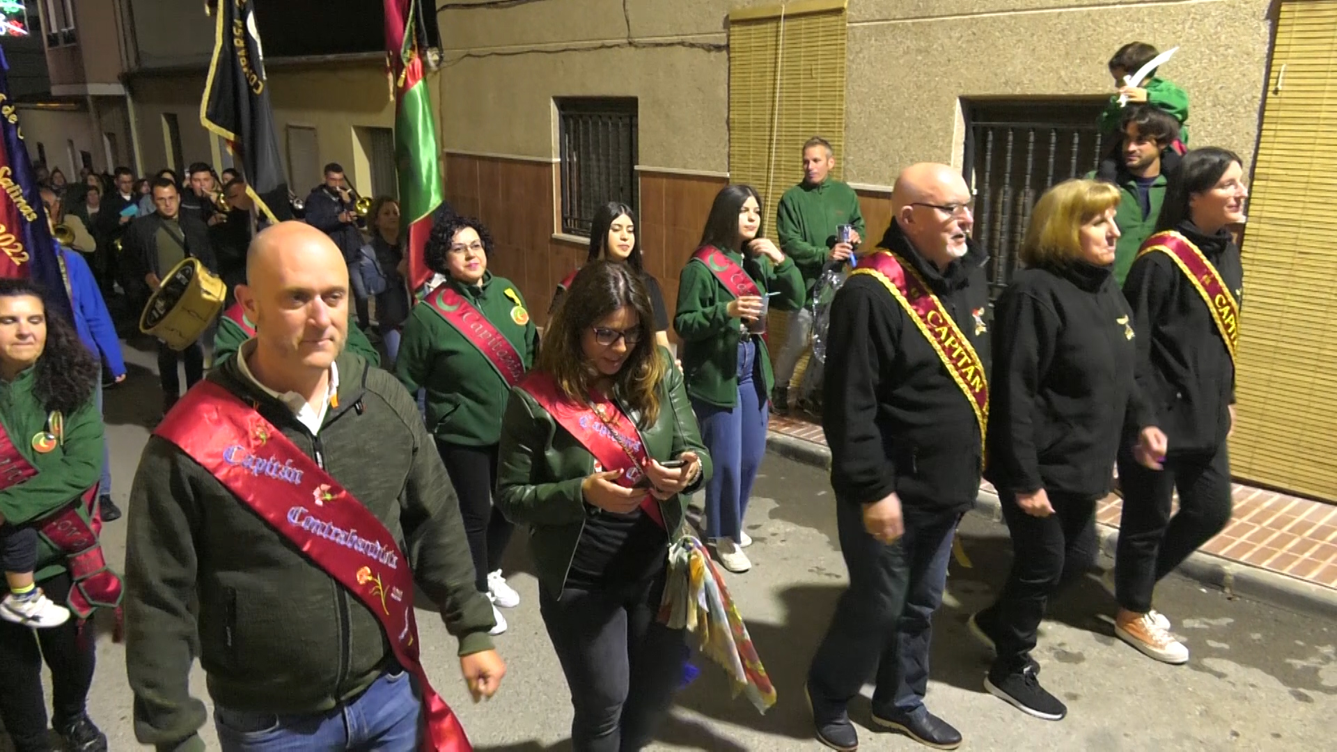 A las 23:45 h., concentración en la nave que hay junto a la gasolinera y salida de las Banderas de las tres Comparsas hacia la Plaza de España.