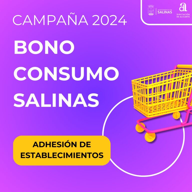 En los próximos meses Ayuntamiento de Salinas pondrá en marcha la Campaña Bono Consumo Salinas 2024, subvencionada por la Excma. Diputación Provincial de Alicante.