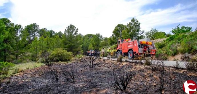 Minutos después llegaban a la zona los bomberos del Área Operativa del Vinalopó y posteriormente dos brigadas forestales que, una vez extinguido el fuego sobre las cuatro y media de la tarde, establecieron un retén de prevención para evitar un rebrote de las llamas. Además, ante el temor de que el fuego pudiera extenderse por un barranco cercano de difícil acceso se decidió movilizar a los medios aéreos. Un avión Air Tractor AT-802 procedente de la base de Mutxamel voló sobre la superficie calcinada para realizar dos descargas de espuma retardante. A continuación regresó al aeródromo pero tomó el relevo un helicóptero con una brigada helitransportada que no llegó a intervenir.