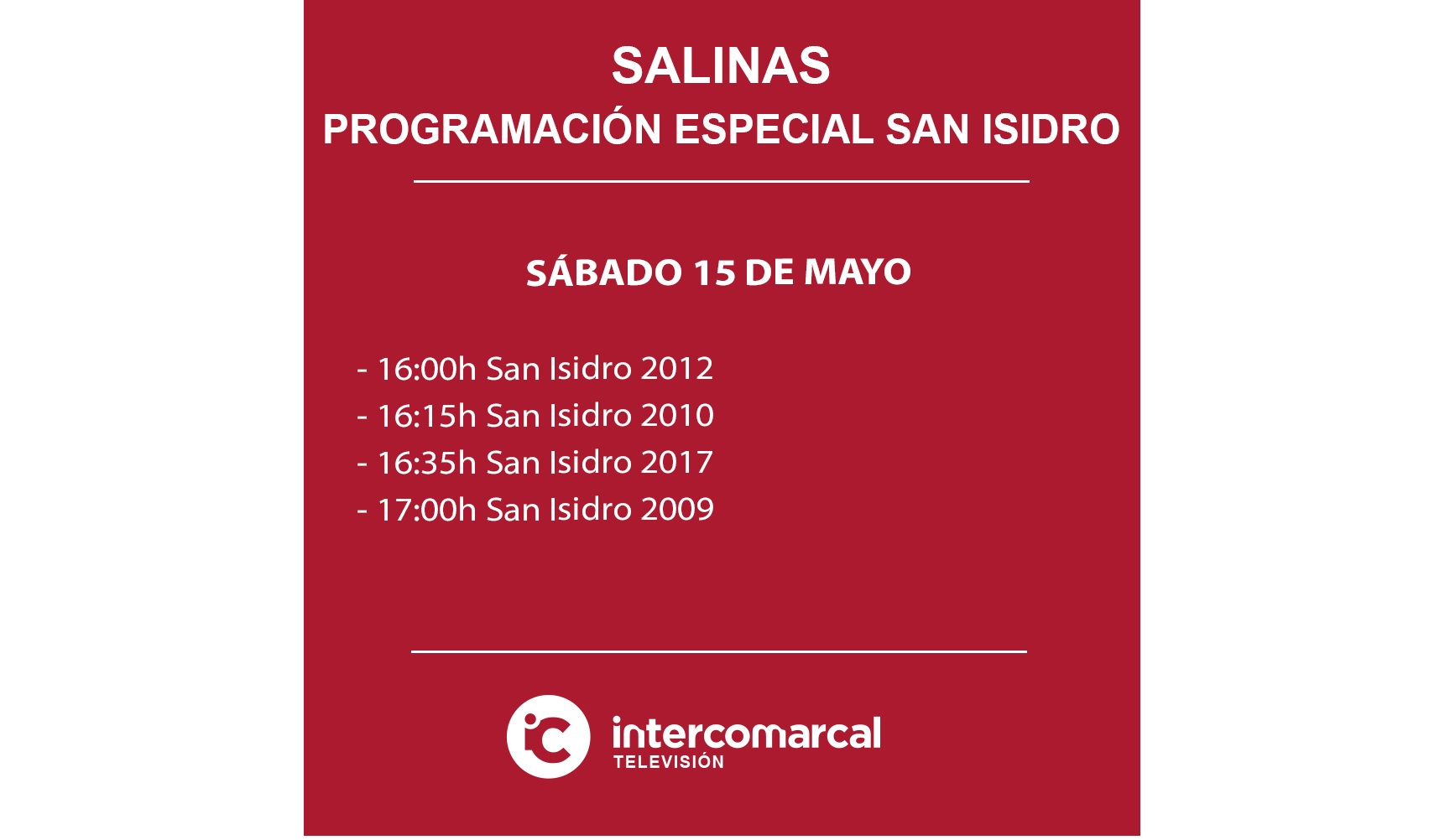 Intercomarcal Televisión ofrecerá una programación especial con motivo de la Festividad de San Isidro