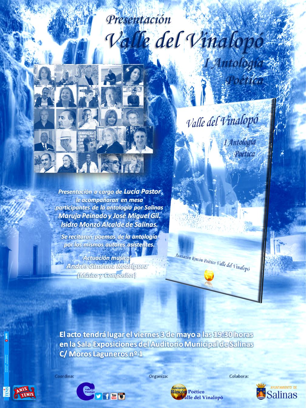 La Asociación Rincón Poético Valle del Vinalopó, presenta el libro Valle del Vinalopó I Antología Poética, con gran participación de autores y en especial autores de Salinas. Con la actuación musical de Andrés Giménez Rodríguez Músico y Compositor