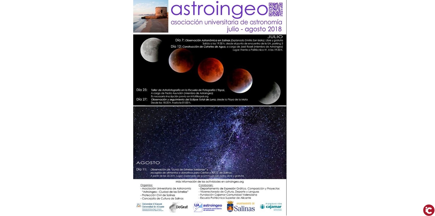 Como cada año la Asociación Universitaria de Alicante Astroingeo, visitará nuestro municipio para realizar la observación de las Perseidas.