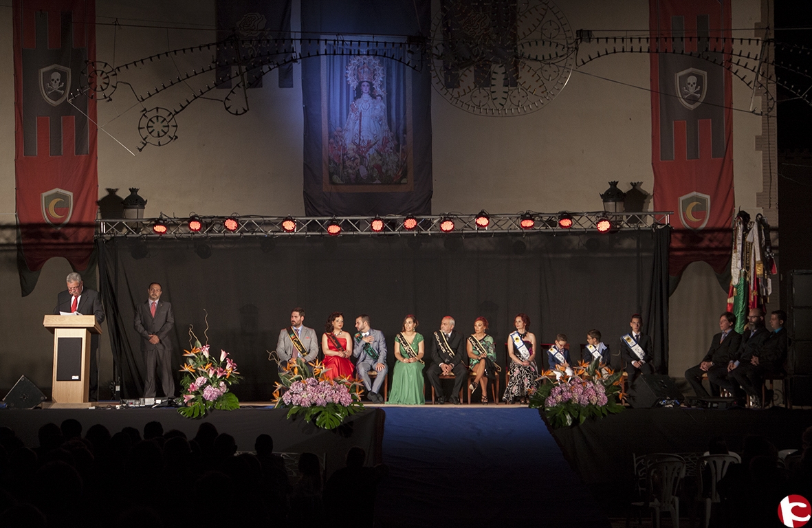 El acto comenzó con la actuación del ballet Arraigo de Elda, y continuó con la presentación de las capitanías de 2014 para concluir con la lectura del pregón, y estuvo conducido por la joven salinera estudiante de Periodismo Ana Pertusa, que realizó una extraordinaria labor como mantenedora del mismo.