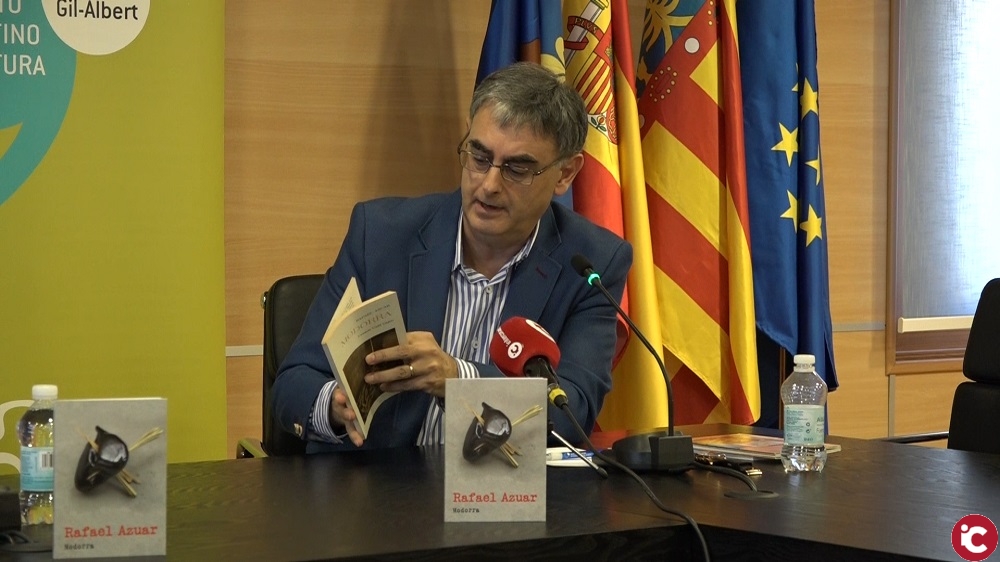 Las cámaras de Intercomarcal Televisión se desplazaron hasta Salinas para grabar la presetnación del nuevo libro de Rafael Azuar, «Modorra».