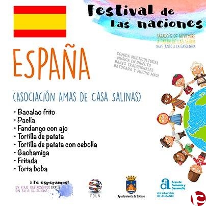 03 nov. El pequeño municipio de Salinas (Alicante) celebra este próximo sábado lo que han denominado como Feria de las Naciones, un festival gastronómico en el que serán los propios vecinos del municipio de siete nacionalidades distintas los que cocinarán platos típicos de sus respectivos países.