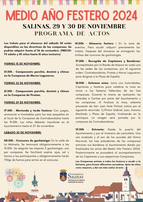 Salinas se prepara para el Medio Año Festero que tendrá lugar los próximos días 29 y 30 de noviembre.