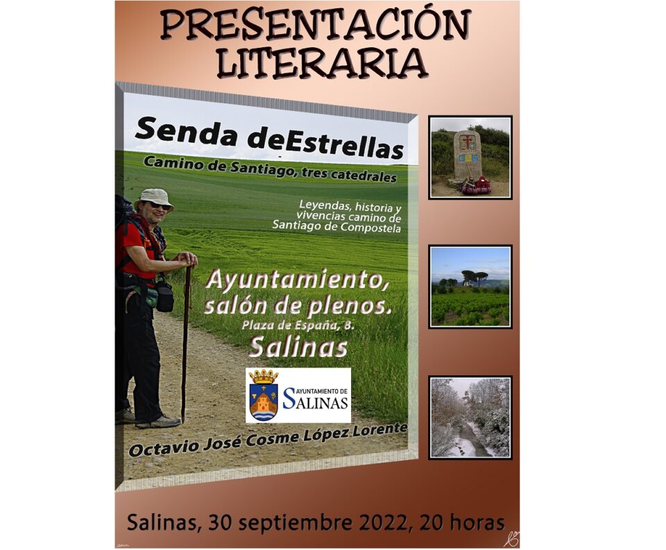 De esta manera, su autor realizará una presentación literaria el próximo 30 de septiembre en Salinas, a las 20 horas, en el Salón de plenos del Ayuntamiento de dicha localidad, donde se trasladará con varios ejemplares del libro, apoyándose en una proyección audiovisual, con comentarios en directo sobre la obra y el Camino de Santiago, y planteando un dialogo sobre el tema con los asistentes al evento.