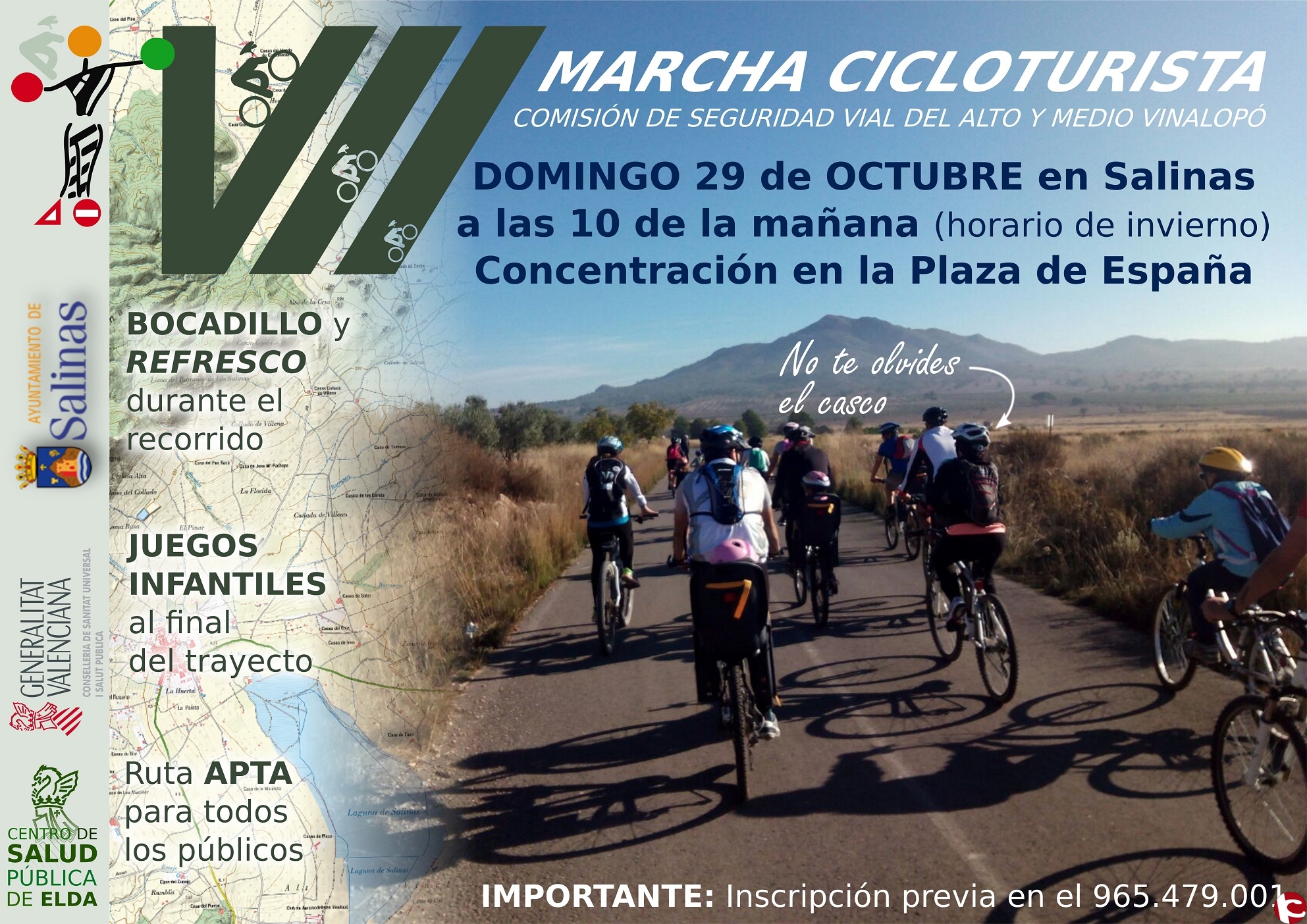 Inscripcion previa en el 965.479.001. USO OBLIGATORIO DEL CASCO