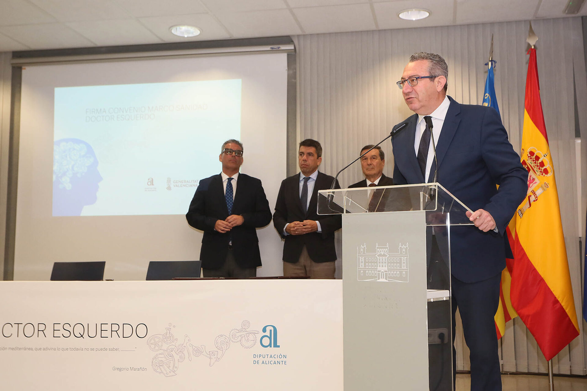 El acuerdo supone la cesión por parte de la Diputación de Alicante de los tres inmuebles del complejo Doctor Esquerdo a la Conselleria de Sanidad, que asumirá la gestión sanitaria con el objetivo de mejorar la atención a pacientes con enfermedades mentales, crónicos y de larga estancia.