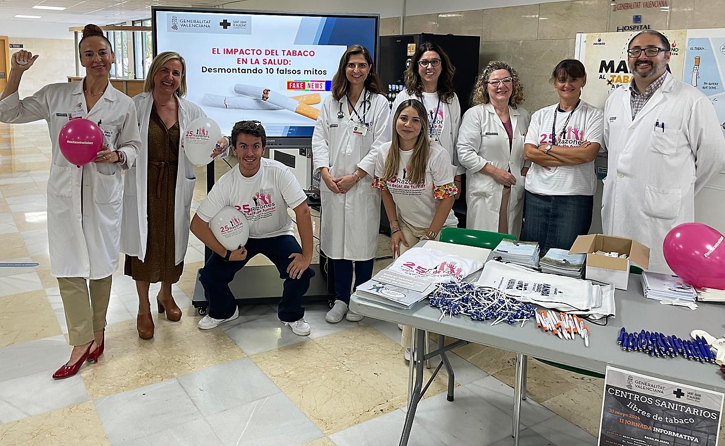 El Hospital Universitario Sant Joan d’Alacant ha organizado por segundo año consecutivo la jornada informativa ‘Centros sanitarios libres de tabaco’, ya que el consumo de tabaco es la principal epidemia prevenible a la que se enfrenta la comunidad sanitaria. Se trata una iniciativa que se desarrolla coincidiendo con la celebración por parte de la OMS (Organización Mundial de la Salud) del Día Mundial Sin Tabaco, que se conmemora mañana.