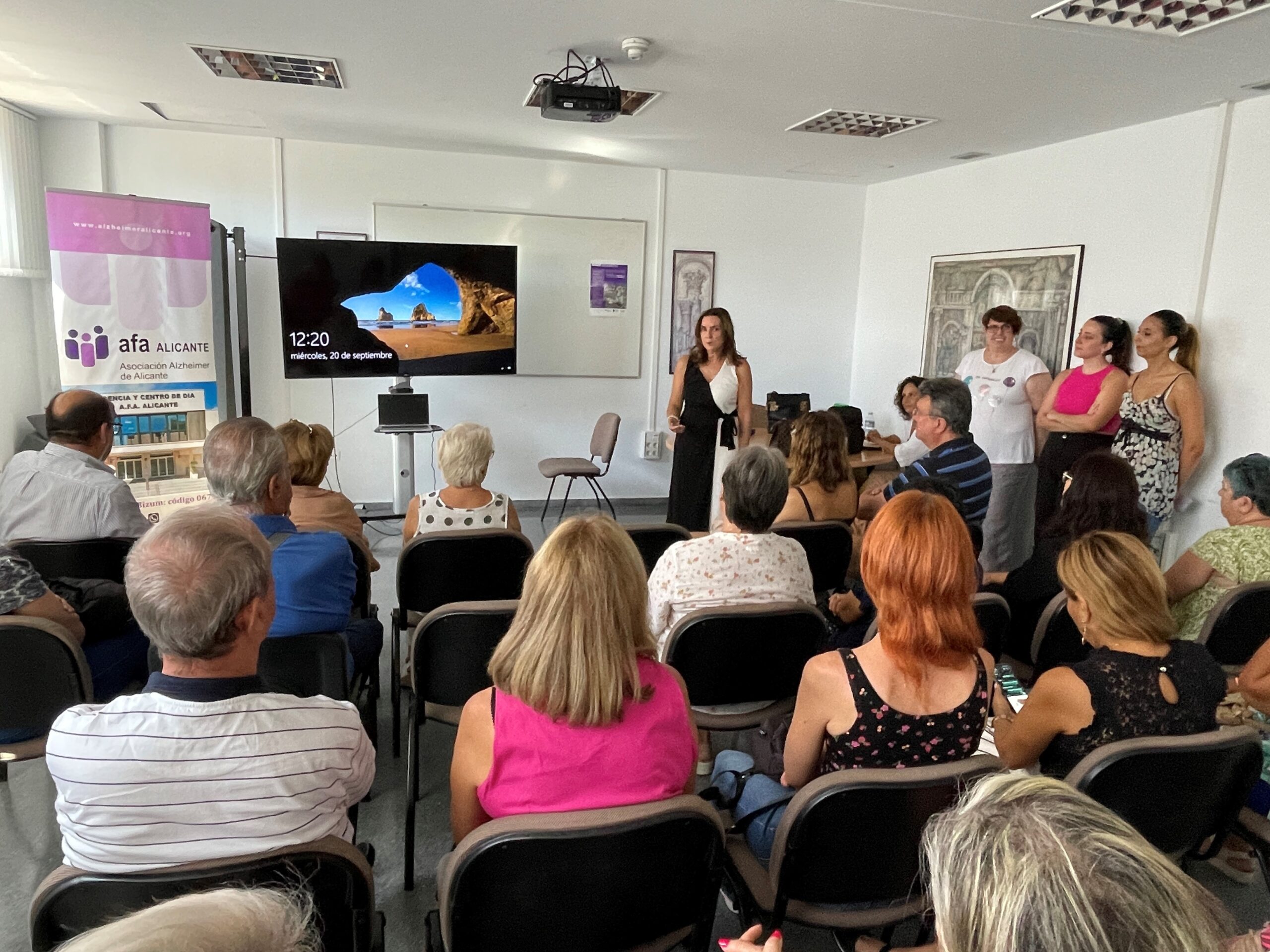 La charla también ha contado con la intervención de la trabajadora social, Susana Muñoz, del departamento de salud Alicante-Sant Joan d’Alacant, quien ha informado a los cuidadores de los recursos que tienen a su disposición desde el punto de vista sociosanitario para atender a una persona con demencia.