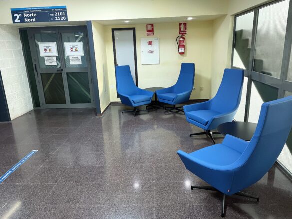 Sant Joan d’Alacant (23.08.23). El Hospital Universitario Sant Joan d’Alacant ha invertido 18.000 euros en la adquisición de nuevo mobiliario destinado a humanizar los espacios comunes de la planta baja y las cuatro plantas de hospitalización del centro. Además de mejorar el confort de los usuarios, los sillones cumplen con una función identificativa de espacios, ya que son de tres colores, los mismos que se emplean para señalizar las zonas norte, centro y sur del edificio.