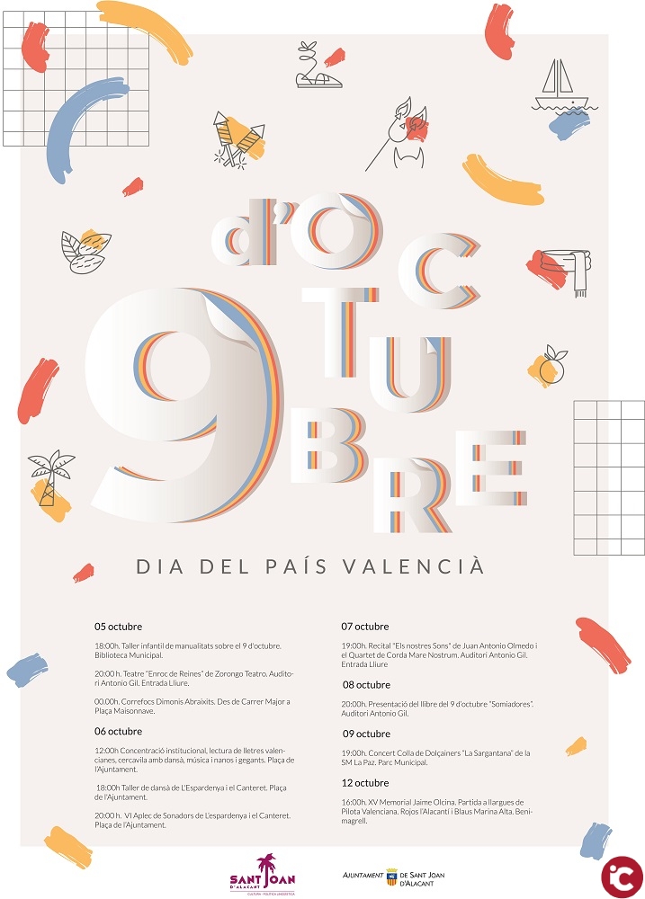 Este año 2018 se ha elaborado una programación variada que trata de fomentar nuestra historia, reivindicar nuestra lengua y cultura y acercarla a todos los santjoaners y santjoaneres a través del lenguaje universal del arte y de actividades para todos los gustos: actividades infantiles, cuentacuentos, deporte, literatura, teatro, danza, música se conjugan con actividades más institucionales como la concentración y el pasacalle.