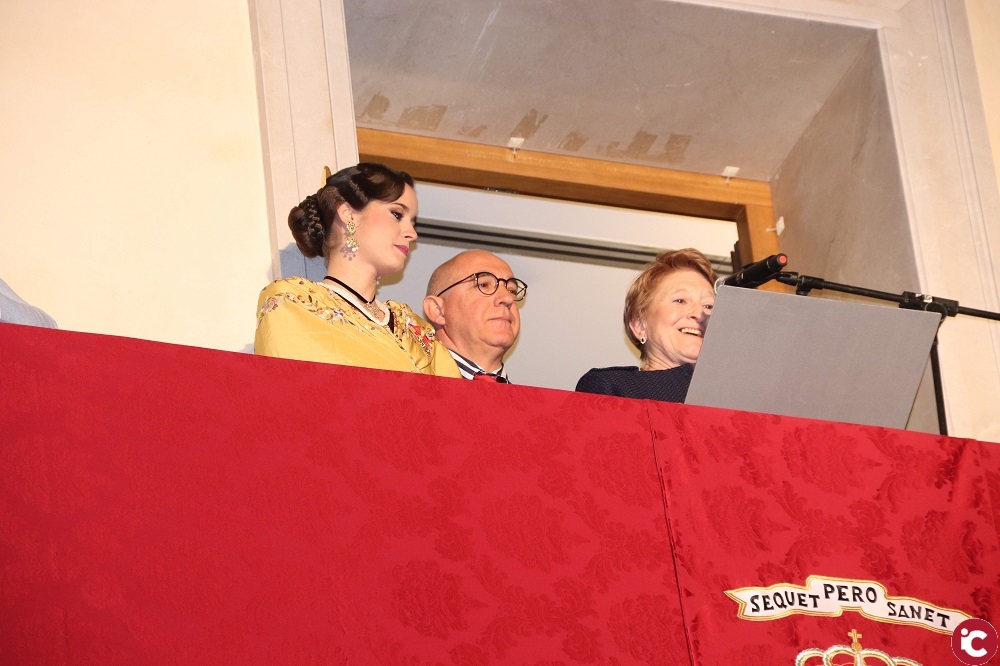 La defensa del pequeño comercio de San Vicente ha sido el mensaje medular que María Antonia Rovira han trazado en su pregón. Quiero que mis palabras sirvan para animar al comercio, ya que es una de las bases más fuertes de una comunidad, y sobre todo al pequeño comercio, que es el que realmente se integra en su entorno, da vida a las calles, se preocupa por sus vecinos y se implica en su pueblo y en sus fiestas, ha dicho desde la balconada de la antigua Casa Consistorial ante un público que ha abarrotado la Plaza de España y la Avenida de la Libertad.