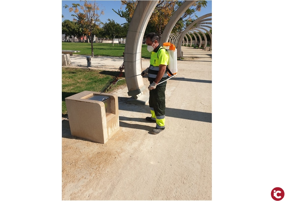Las zonas de juegos infantiles verán incrementada su limpieza, así como todo el mobiliario urbano de alrededor como son bancos o papeleras, entre otros. En cuanto a los parques cerrados, Lo Torrent y Adolfo Suárez se están realizando desinfecciones con agua jabonosa.