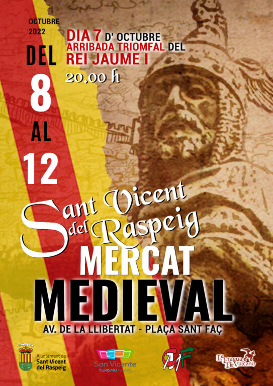 Este fin de semana, el Ayuntamiento de San Vicente del Raspeig recupera la normalidad en los actos de celebración del 9 d’Octubre, con el tradicional desfile de la Arribada Triomfal del Rei Jaume I a Valencia, en el que se escenificará la entrada a caballo del Rey y su corte a la ciudad del Turia en el año 1.238, y Sant Vicent Medieval, que transformará las calles de la localidad, de nuevo, en un espacio donde disfrutar de un ambiente entre mercaderes, juglares, artesanos y caballeros.