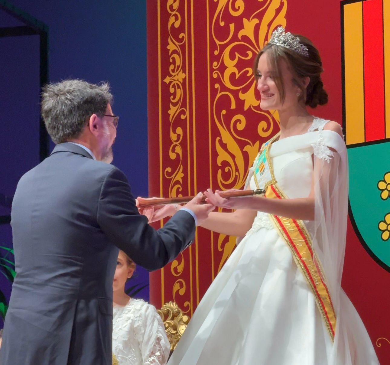 Otro de los momentos destacados de la velada fue la entrega de la vara de mando del Ayuntamiento de San Vicente del Raspeig por parte del primer edil a Marina Lillo como nueva reina de las fiestas. Este gesto fue precedido por la firma del Decreto de Alcaldesa de Fiestas que se llevó a cabo el pasado viernes en el Consistorio, una simbólica tradición que también contó con el edil Cristian Gil y la presidenta de la Comisión de Fiestas, Reyes Gomis, como testigos.