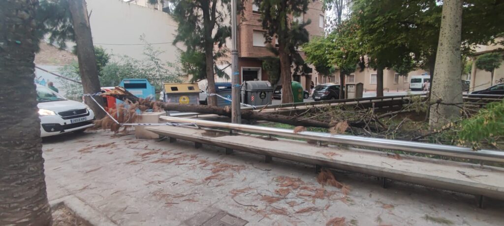 También la Policía Local ha realizado 11 intervenciones por caída de ramas y la tala de árbol en el Paseo las Gardenias Otras siete incidencias han afectado principalmente a las instalaciones eléctricas de la ciudad, cableado y mal estado de una farola, además de desprendimientos menores tanto en fachadas como de un toldo y una antena. Algunas de estas acciones se han realizado en coordinación con efectivos del Consorcio Provincial de Bomberos. Según ha desvelado el concejal de Seguridad Ciudadana, Adrián García, “afortunadamente no hay que lamentar daños personales”.Por otro lado, también desde la Concejalía de Deportes se ha intervenido durante la mañana para limpiar el Pabellón Municipal Ginés Alenda, donde se ha retirado el agua acumulada en diferentes zonas y a lo largo del día se revisará la situación de todas las instalaciones.