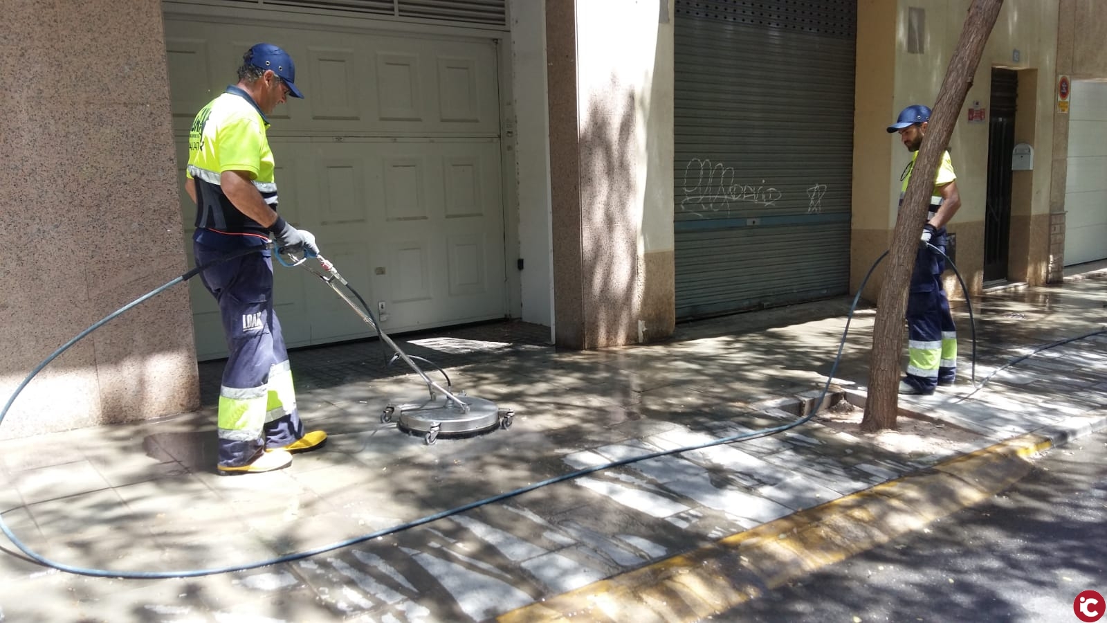 El Ayuntamiento intensifica las labores de limpieza viaria con baldeos de agua caliente a presión