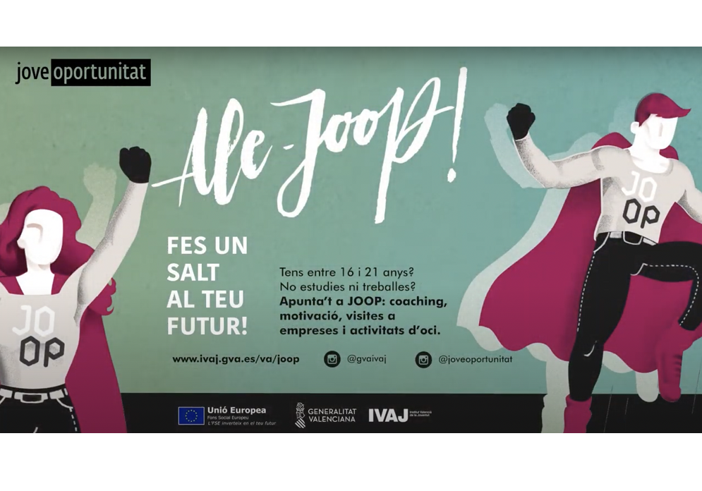 La Concejalía de Juventud de San Vicente del Raspeig, en colaboración con el Institut Valencià de la Joventut (IVAJ), pone en marcha el nuevo Programa Jove Oportunitat (JOOP). Este proyecto cuneta con la financiación del Fondo Social Europeo (FSE).